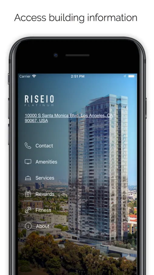 Riseio lets you access all your building features, services and amenities.