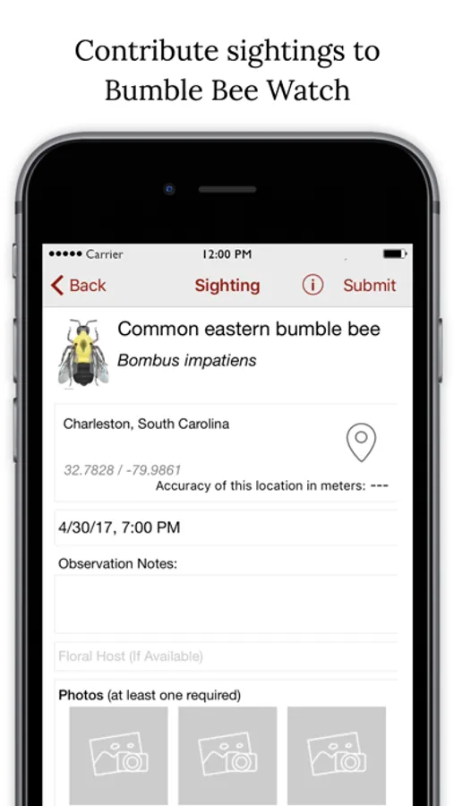 •Submit sightings and upload photos directly to Bumble Bee Watch and contribute to an important ongoing citizen science project
