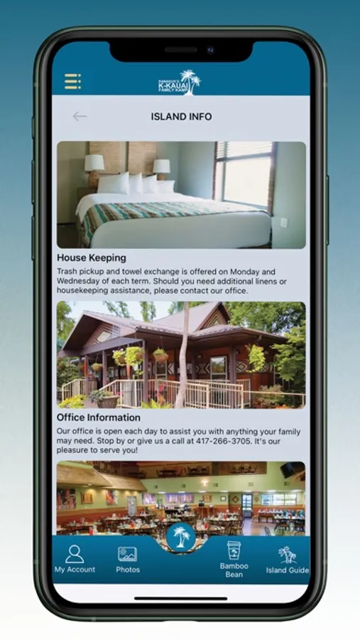 This app will help you keep track of all the "need-to-knows,” view daily photos, order morning coffee from the Bamboo Bean, view a map of “The Island,” and so much more!