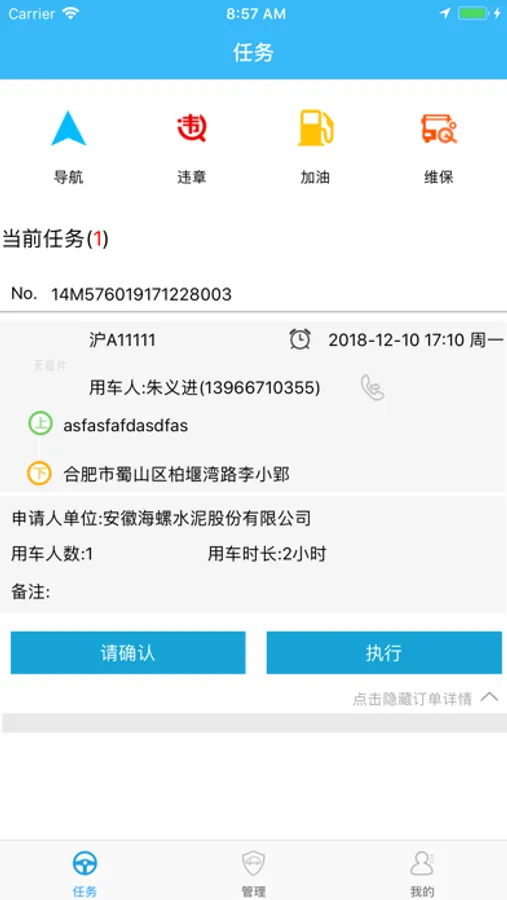 3.提供申请订单功能,何时何地都可以进行申请用车,实现用车预约、订单查看和费用结算功能,实时掌握自己的出行状态;