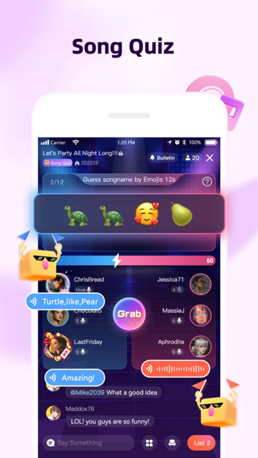 全民Party, a social app for voice chat, playing games and singing
