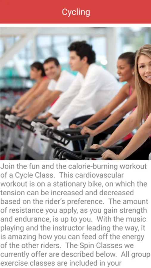 Group exercise featuring: Cycling, Pilates, Barre, and Hot Yoga classes