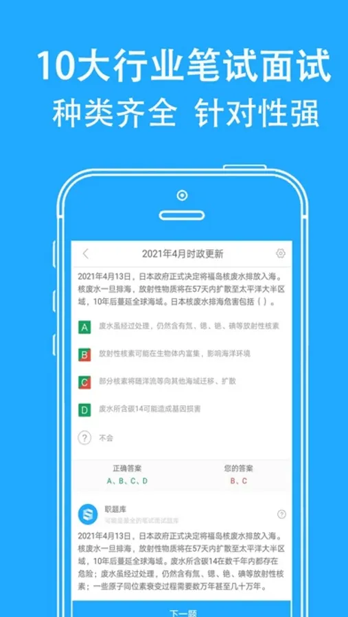 你的求职刷题神器。涵盖互联网、央企、快消、地产、金融、银行等热门行业公司和技术、产品、运营、行政等热门岗位的求职学习平台,满足你在求职过程中的需要,让你的求职道路更加顺畅!