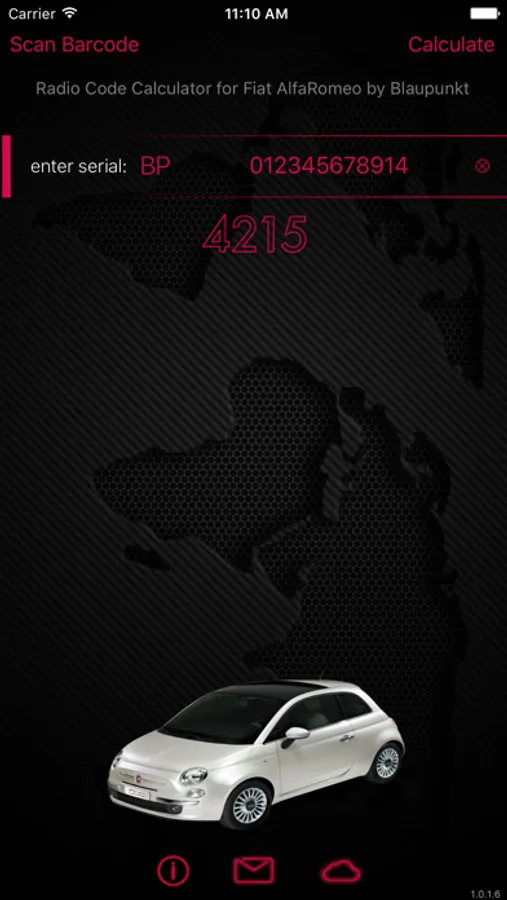 The application is used remind the owners of radio factory produced vehicles FIAT brand by BLAUPUNKT radio code. The calculation of the code is possible in two ways: scanning a bar code sticker to the side, or to enter the serial number sticker from the side manually (14 digits).