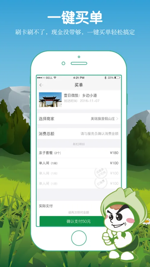 一键买单:刷卡刷不了,现金没带够,一键买单轻松搞定。