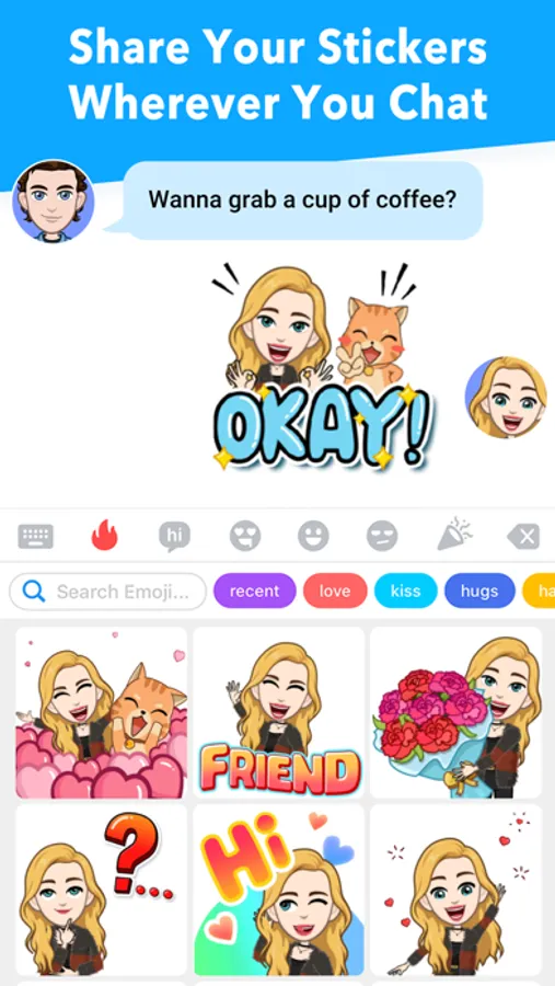Be the first to send your favorite emojis and GIFs with your avatar to your friends!