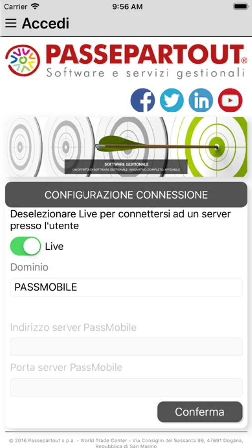 Per usufruire del servizio è necessario disporre di un server Passepartout Mexal o Passcom.