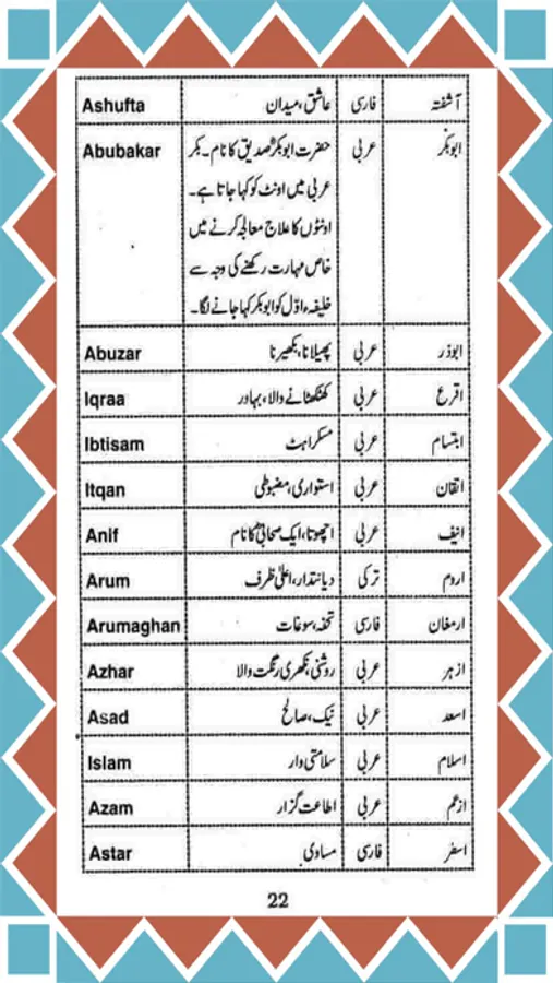Islamic names are popular among Muslim community. Name your new born kids, choose from listed Islamic baby names with Urdu and English meaning. Our app contains notable collection of traditional Islamic names, Modern and unique Islamic baby names, Baby Boy Names and Baby Girl Names. Best way to get Islamic baby names suggestions to help Muslim parents select name of their kids easily. Islamic baby names for boys and girls are separately sorted into different pages for easiness. There are all types of Islamic baby names in Urdu, ordered alphabetically and sorted out for baby boys names and baby girls names.