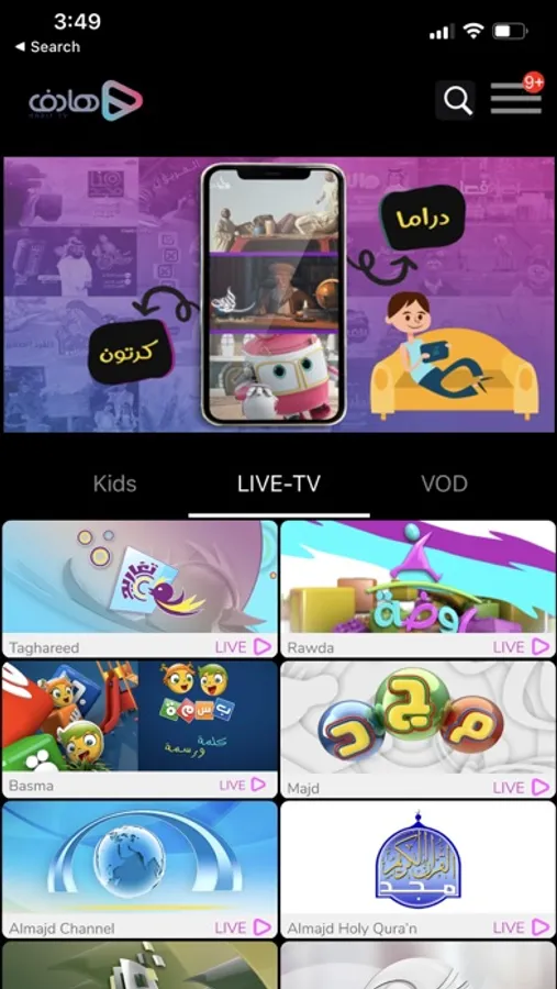 • The name of this service is Hadif. A video streaming service provided by the Almajd TV Network.