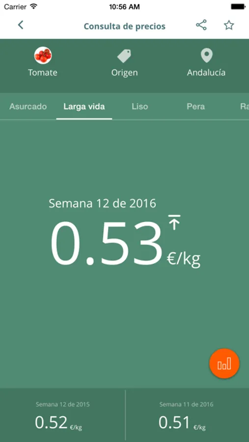 - Último precio disponible de la campaña y precio de la semana anterior.