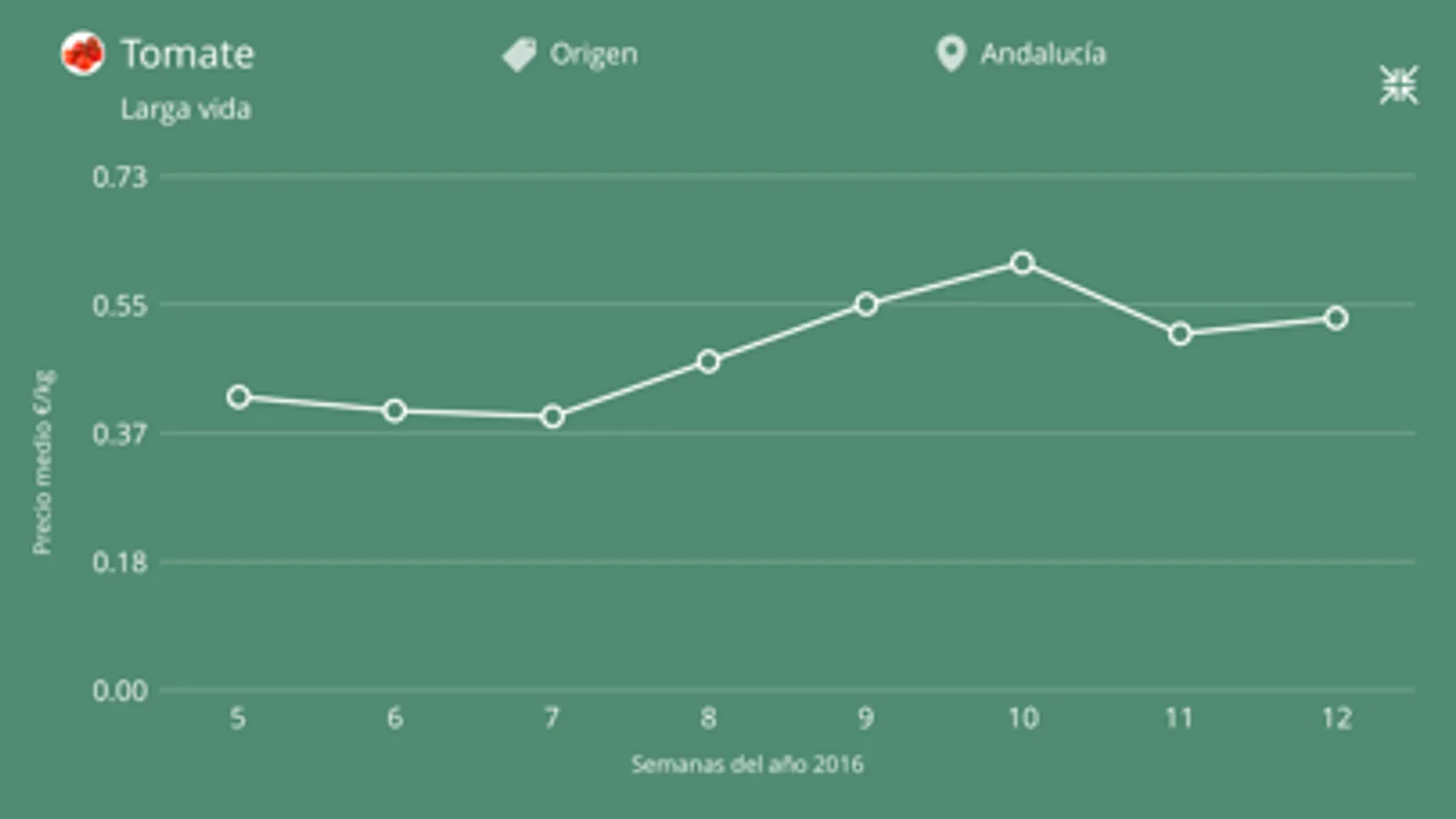 - Gráficas de tendencia de precios en las últimas ocho semanas.