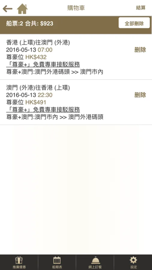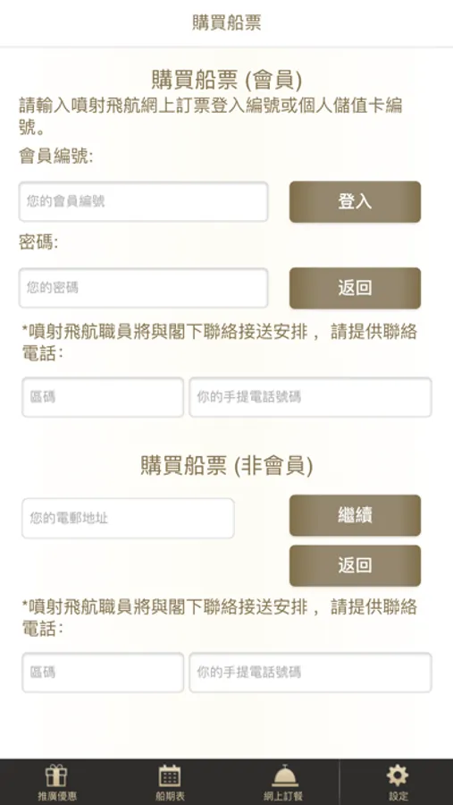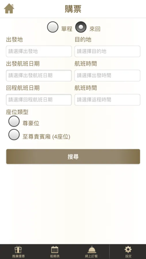 - 查閱航班時間及訂購「尊豪位」及「至尊貴賓廂」船票