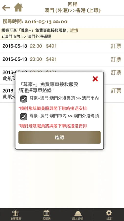 噴射飛航全新手機應用程式,讓你更方便快捷訂購「尊豪位」船票往返港澳及預約「尊豪+」免費專車接駁服務。