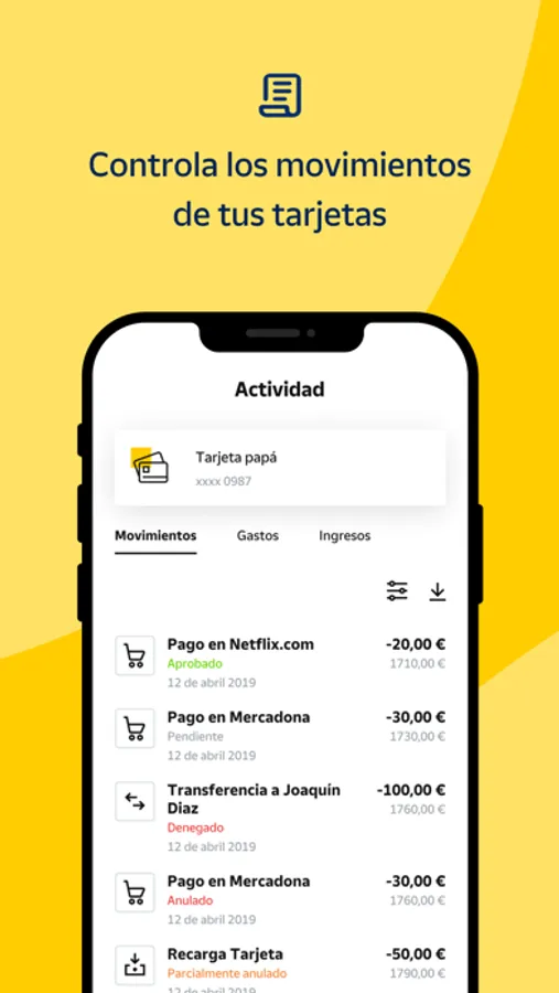 - Consulta de todos tus gastos e ingresos, organizados por categorías y fechas.