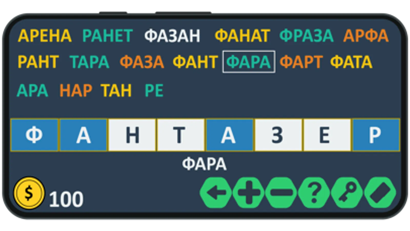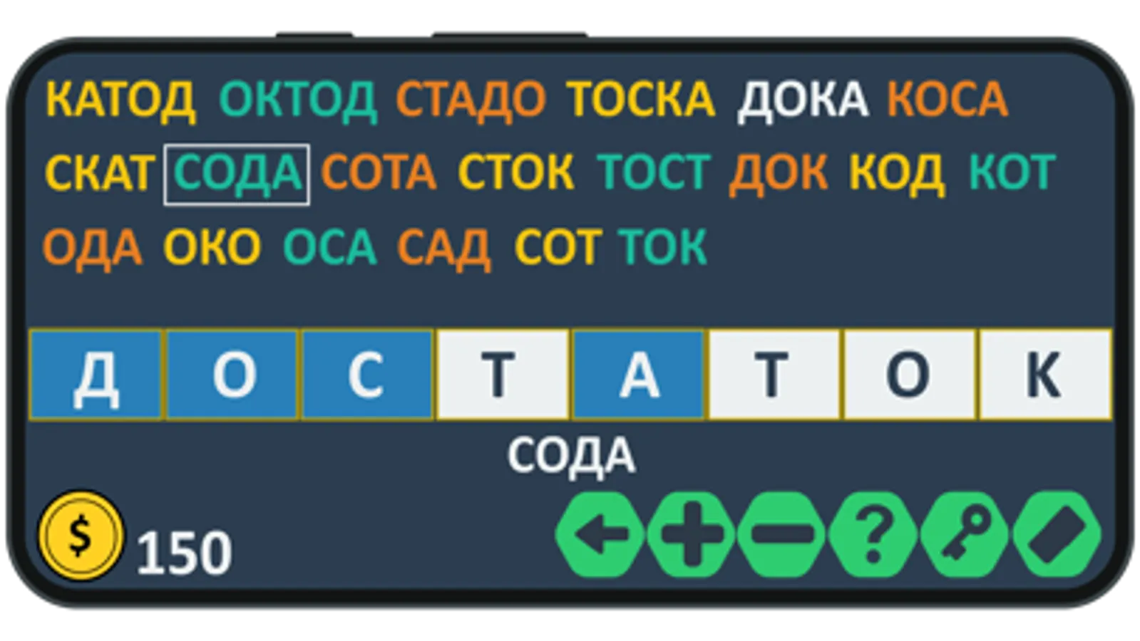 Текущая версия игры в слова оптимизирована под телефоны и смартфоны. Данная игра также известна под названием "Наборщик", "Виселица", "Филворды", "Балда".