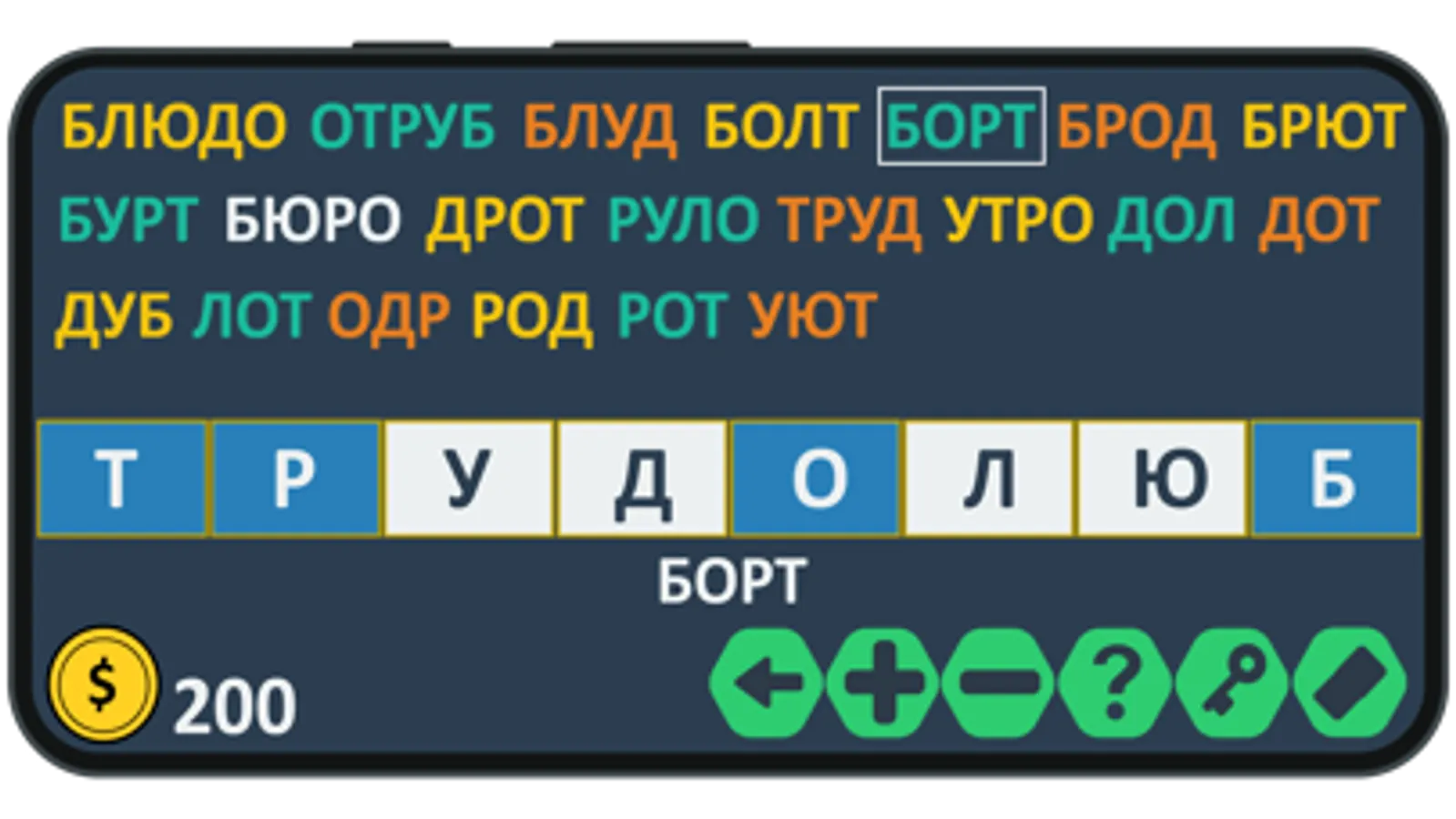 Составляй слова из букв в свое удовольствие. Приложение содержит 700 уровней, в каждом из которых представлено слово длиной 8 букв, из которого необходимо составить максимальное количество слов.