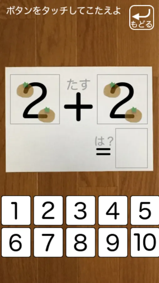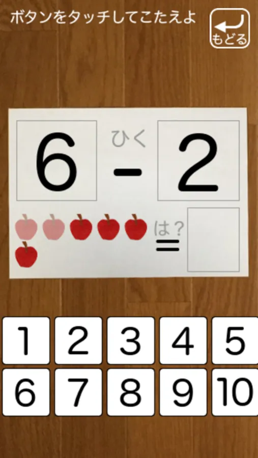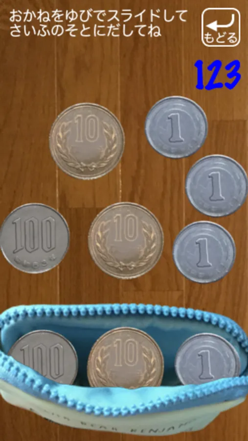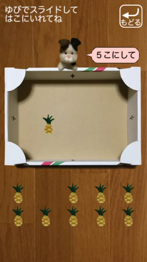 指定された数だけ下のくだものを箱の中に、指でスライド