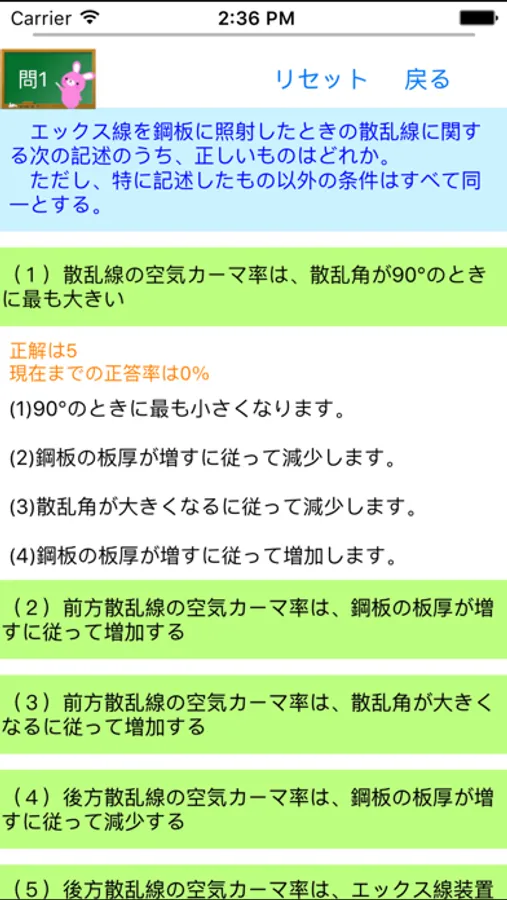 どれくらい自分が正解しているか知るためのバーを問題文の上に設置しているため、学習の際の目安にすることができます