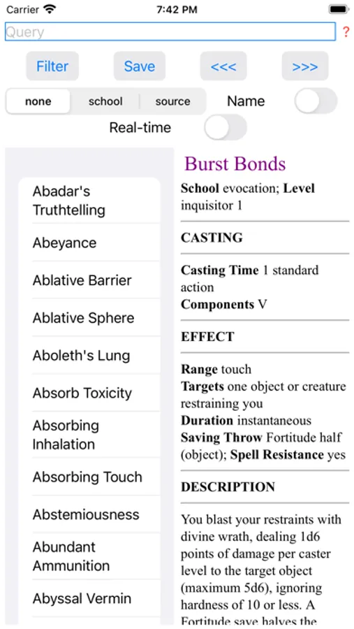 Spell list for Pathfinder® RPG with a semi-natural language filter.