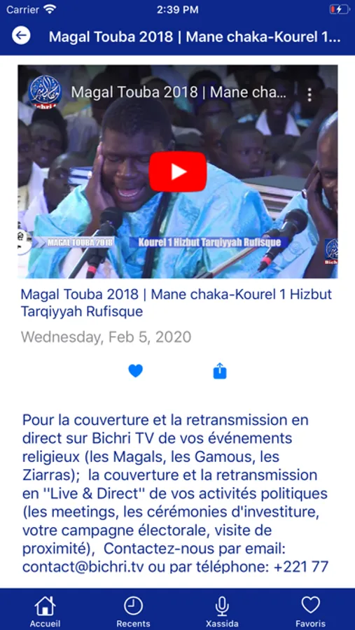 Bichri TV is an Islamic channel serving muslims in general and the Murid Community around the world in particular. With the App you can watch live stream of Bichri TV, DVR, Videos on Demand of past shows, online radios etc...Our Headquarters are in Denver, CO, but we have representations and offices in major international cities, like Touba, Dakar, Diourbel, New York, Brescia, Brussels, London, Buenos Aires, to name but a few.
