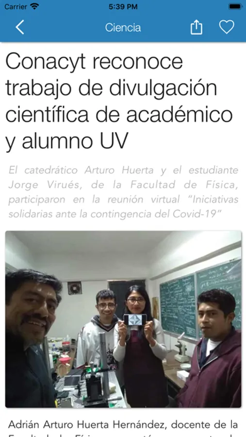 Aplicación oficial de Universo, sistema de noticias de la UV.