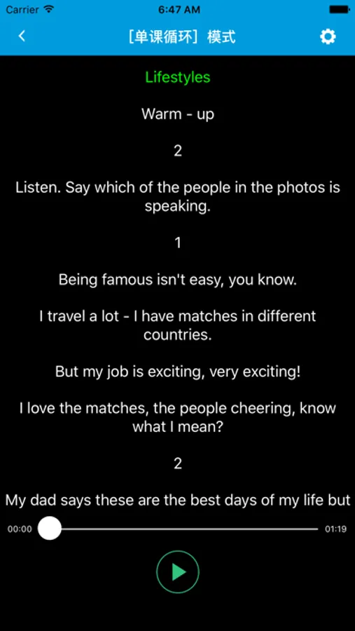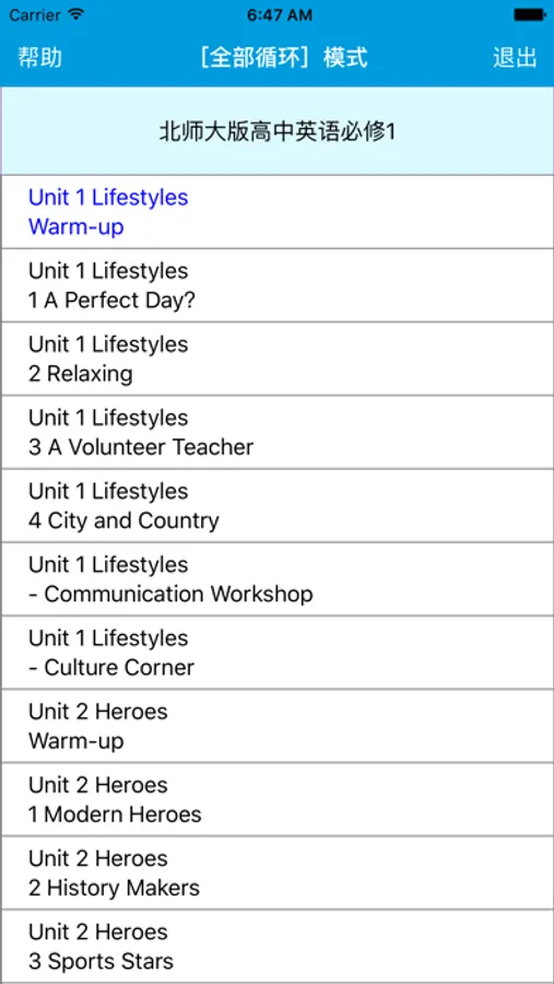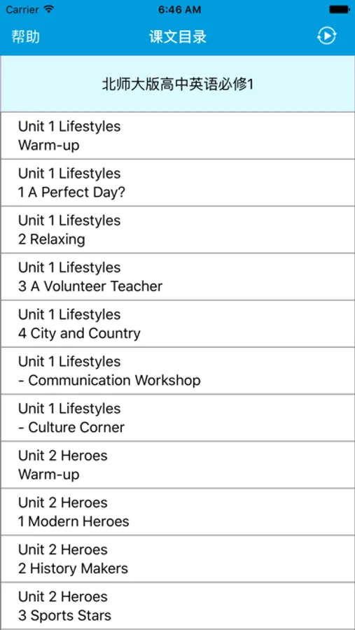 本应用对应外北师大版高中英语必修1课本,具有跟读模仿,自动听写,变速播放的复读机功能。