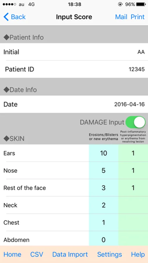 * As a criterion guide for the numbers and sizes of erosions, bullae, and new erythemas in each region is displayed, it is possible to enter data on the spot while examining the patient.