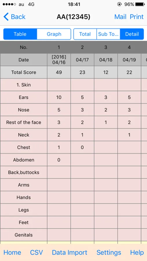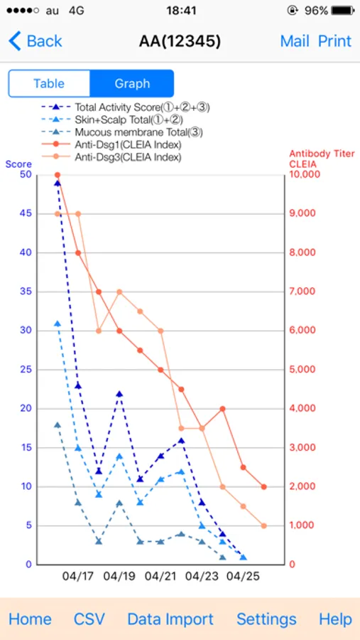 * A score chart (table and graph) for each patient can be displayed on the screen by a simple operation, and the chart can be used to explain the disease condition to the patient.