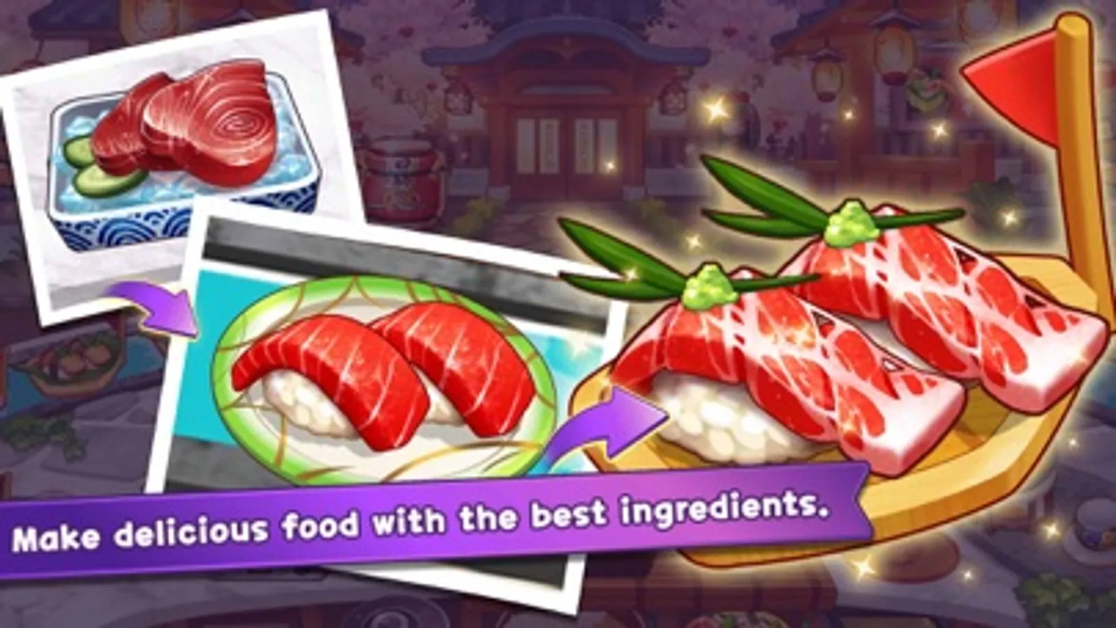 - Follow the food preparation steps of restaurants from all around the globe, including a steak house, a revolving sushi bar, and a Korean restaurant!