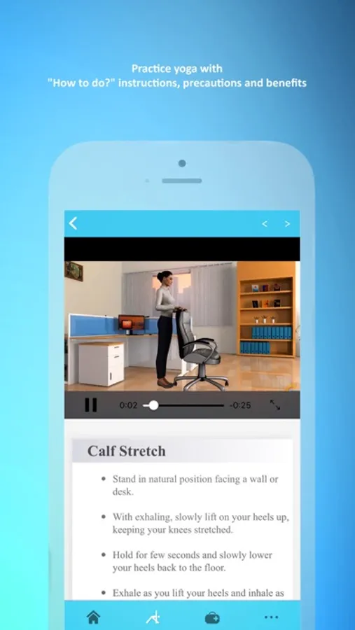 * PRACTICE SESSION: All of the yoga poses and exercises are detailed with HD video, audio and "How to do?" instructions and information on benefits and precautions.