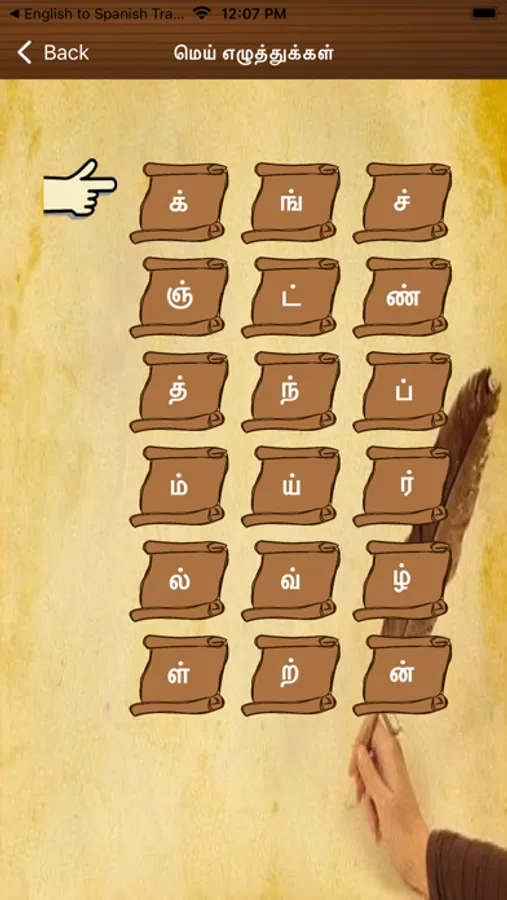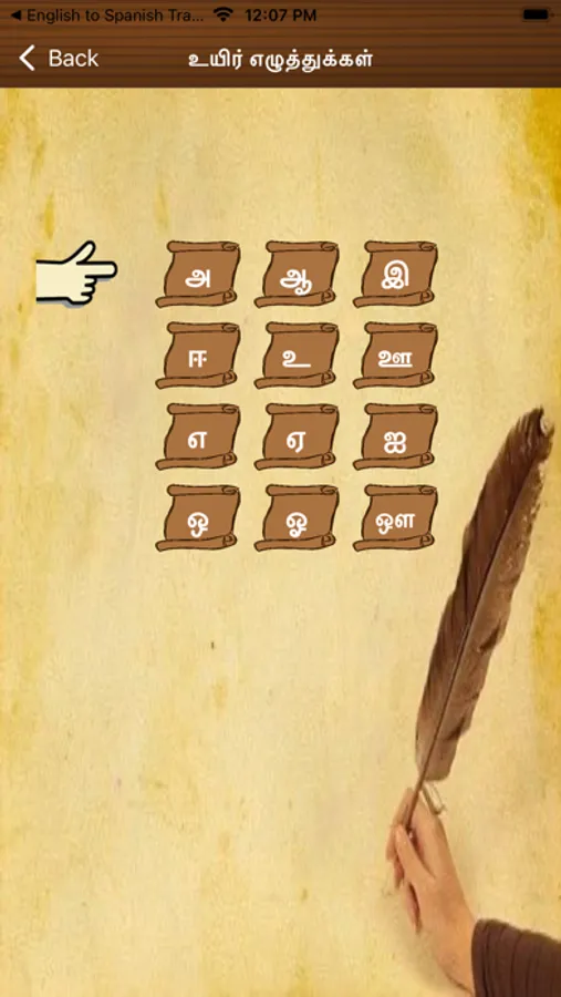 All Tamil vowels and consonants are available; the app features a complete set all Tamil letters that you may need to learn. This applies to both vowels and consonants.