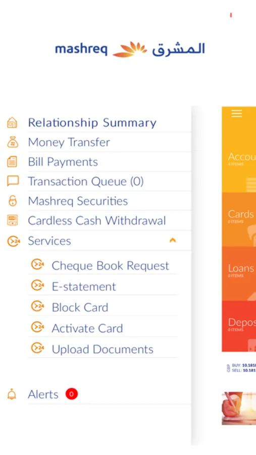 • Money Transfers: Transfer money within Mashreq or anywhere in the world with the flexibility of using special FX deal rates
