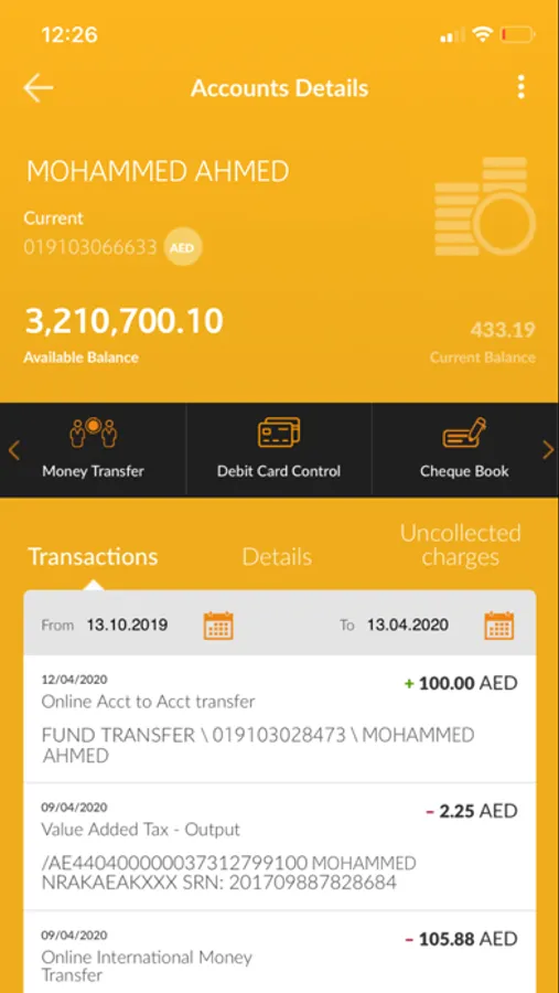 • Other Services: Customers can apply for a cheque book, subscribe to estatement, view the last 6 months’ estatement, activate or block Credit & Debit card, view exchange rates and set up Forex Alerts.