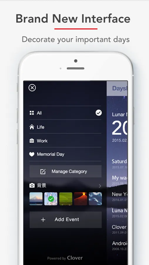 · Custom Categories - 3 default categories: Anniversary, Work, Life, support custom categories
