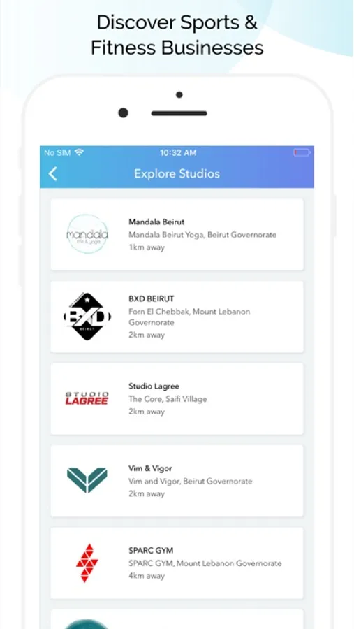 Discover a variety of nearby studios, gyms, academies and sports facilities.