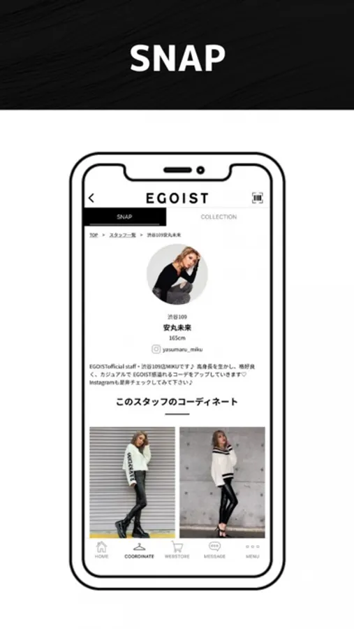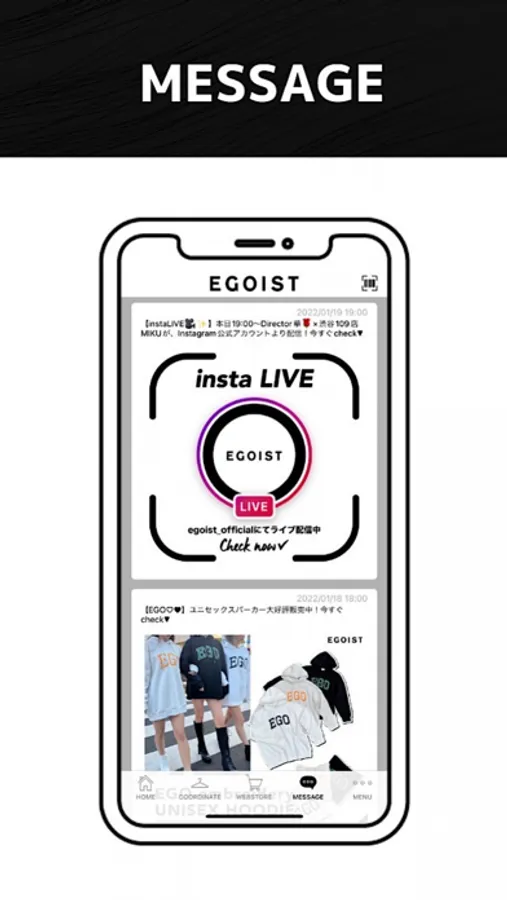 アパレルブランド EGOISTの最新情報を、いつでもどこでも気軽にcheckして頂けます。
