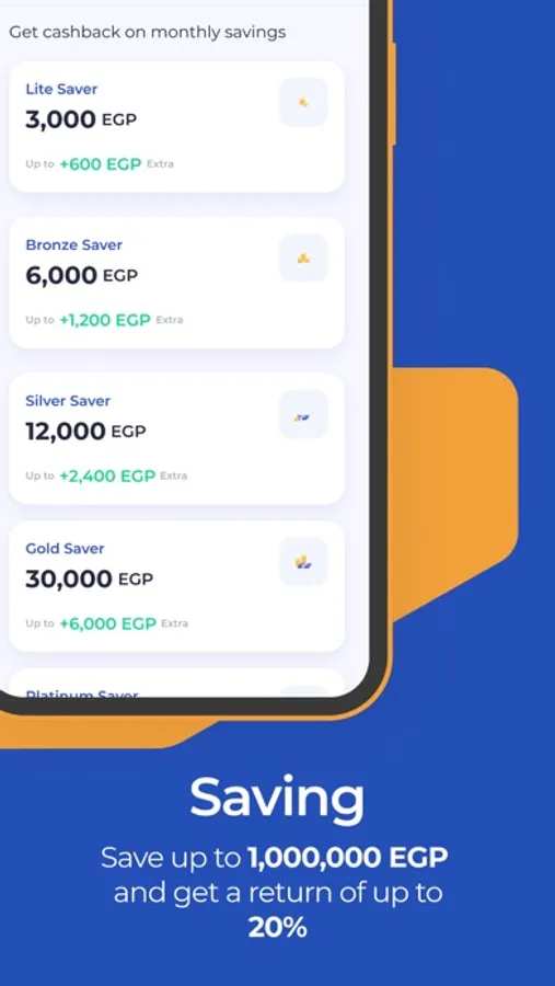 5. Smart Saving; The smartest saving option in the market is where you can save up to 120,000 EGP and get a return of up to 20% on top of your savings.