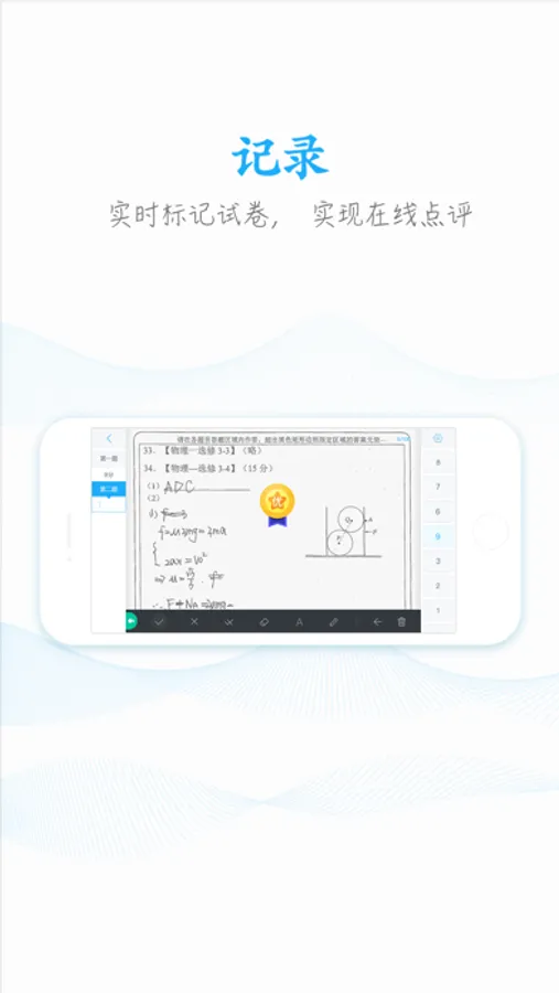 3.对学生的试卷支持多种标记方式,并且支持对试卷输入文字评价。