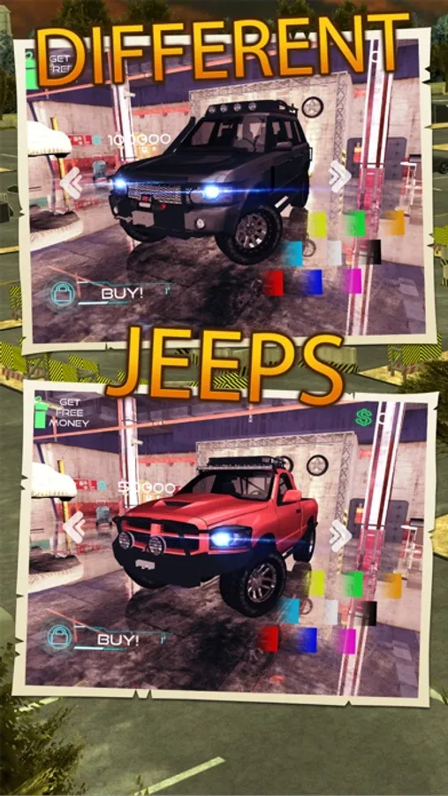 - Different Realistic Jeep Vehicle. Different Jeep options. All jeeps has different speeds, different options and different drive options.