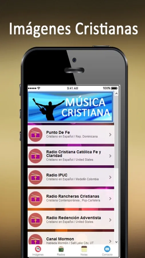2.- Esta App INCLUYE la mejor radio cristiano en español gratis.