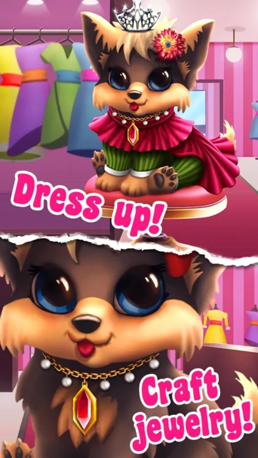 • Create luxurious necklace and dress up little puppy Bella any way you like! Pick from a wide selection of royal clothes and accessories, and take a picture of her new style!