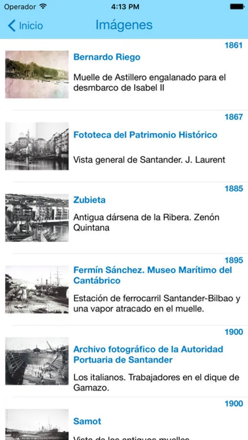 Finalmente, a través de la app, el usuario tiene acceso a la comunicados y noticias que puntualmente produce por la Autoridad Portuaria de Santander, así como a una atractiva galería de fotografías históricas fechadas entre 1861 y 1950.