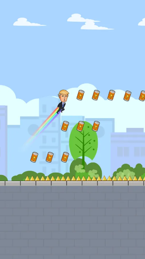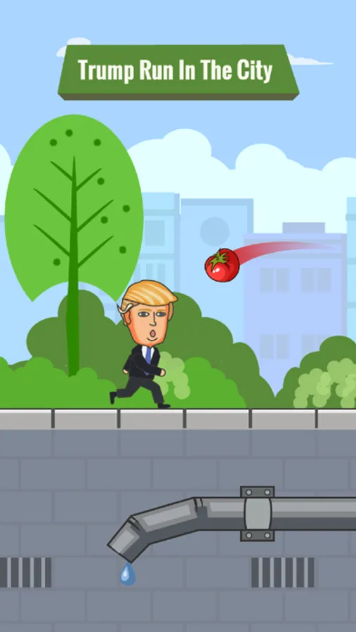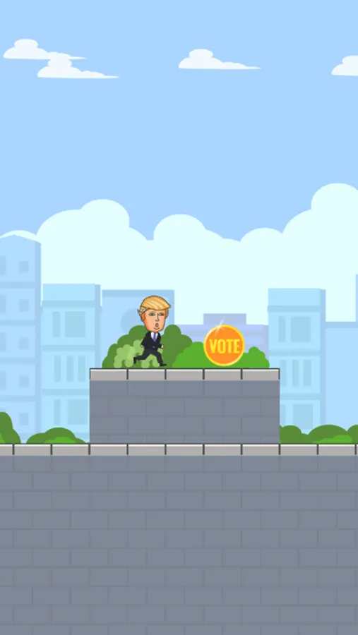 Help Trump escape from the attack of tomatos and get the VOTE at the end of road