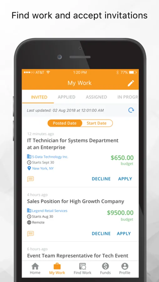 The Work Market iOS app lets our talent community manage their assignments on the go. No matter where work takes you, we make accessing, completing, and getting paid faster and more efficient for all assignments, right from your Smartphone.