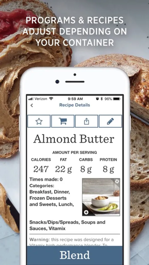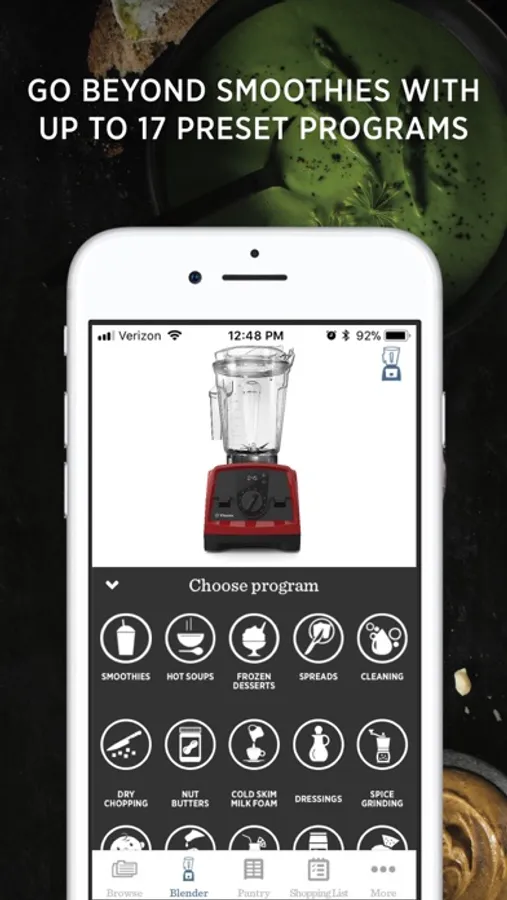 Wirelessly connect your Ascent® or Venturist™ Series blender to your mobile device, and gain access to 17 automatic blender programs, including smoothies, nut butter, hot soup, batter, and baby food.