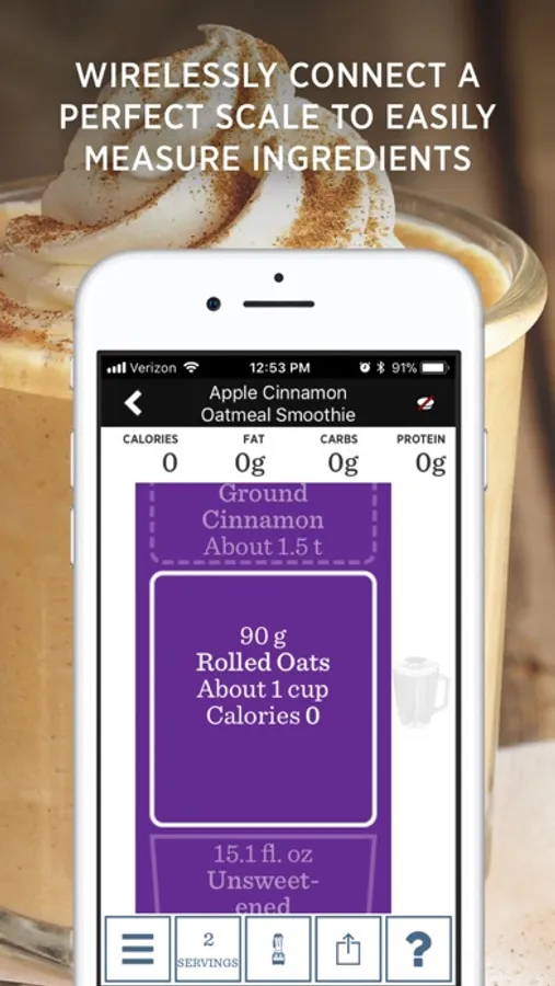Don’t have a Vitamix Ascent or Venturist Series blender? This app also connects to the Perfect Scale, which helps reduce mess since ingredients are measured right in the blender container. Get precise, repeatable recipe results that can be automatically adjusted by volume, number of servings, and even calorie count – in any Vitamix blender.