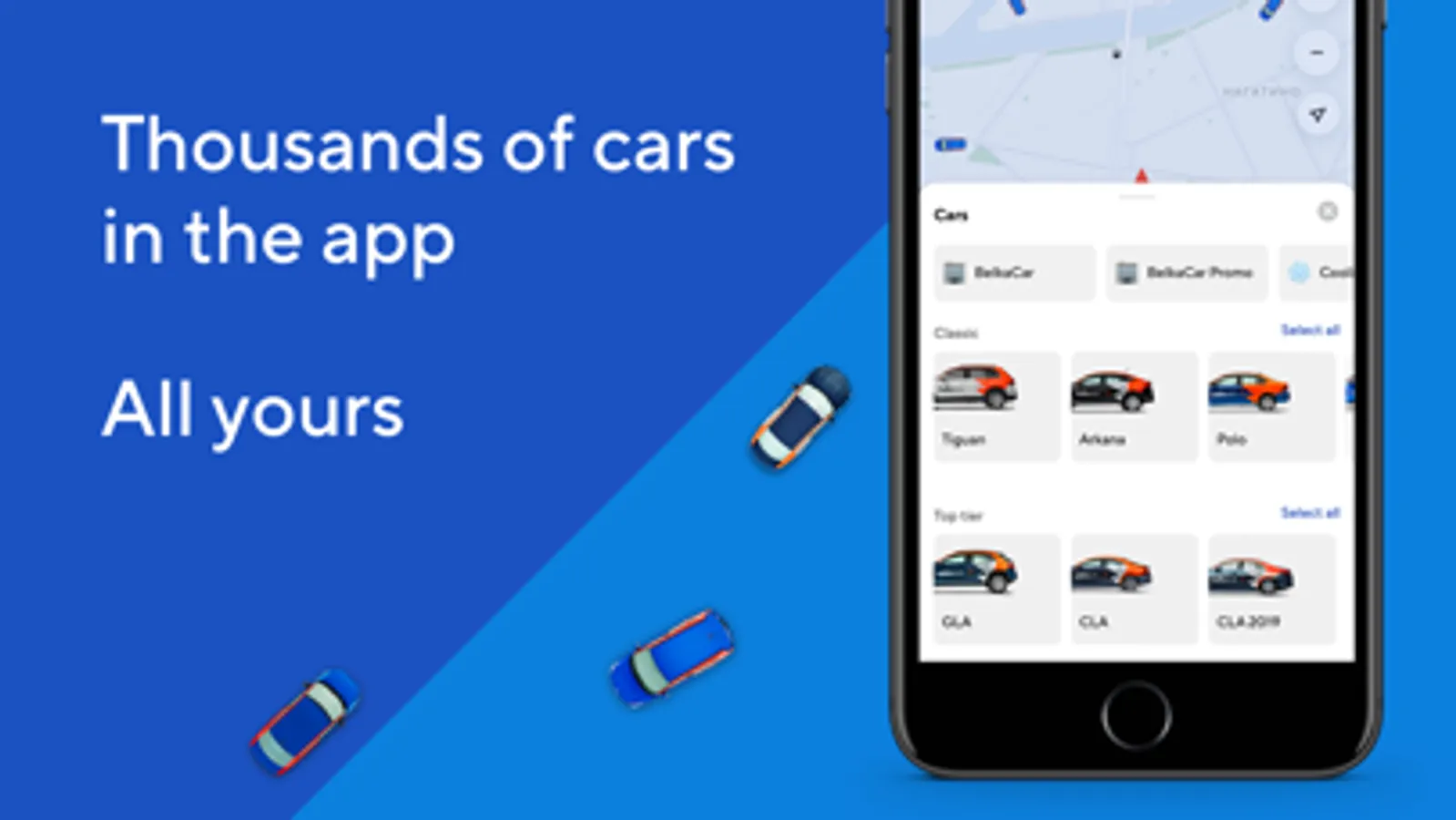 BelkaCar carsharing is an affordable, convenient and safe alternative to owning a car or taking a taxi. Take a few minutes to sign up in the app and you can book a car whenever you need it. Thousands of new cars are available at any time in one application.