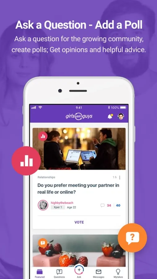 In this community, you can ask questions and create polls to get opinions from thousands of helpful girls and guys instantly!