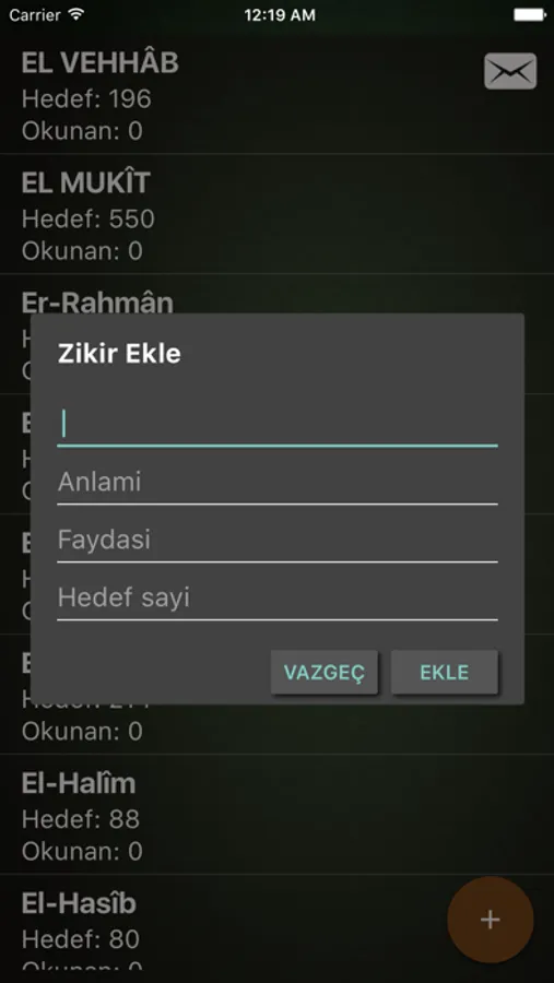 Mevcutta bulunan zikirleri çekebilir, anlamlarına bakabilir, neye faydalı olduğunu öğrenebilir ve hedef sayınızı belirleyebilirsiniz.
