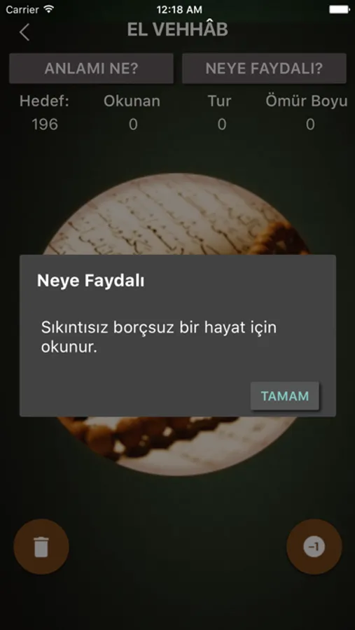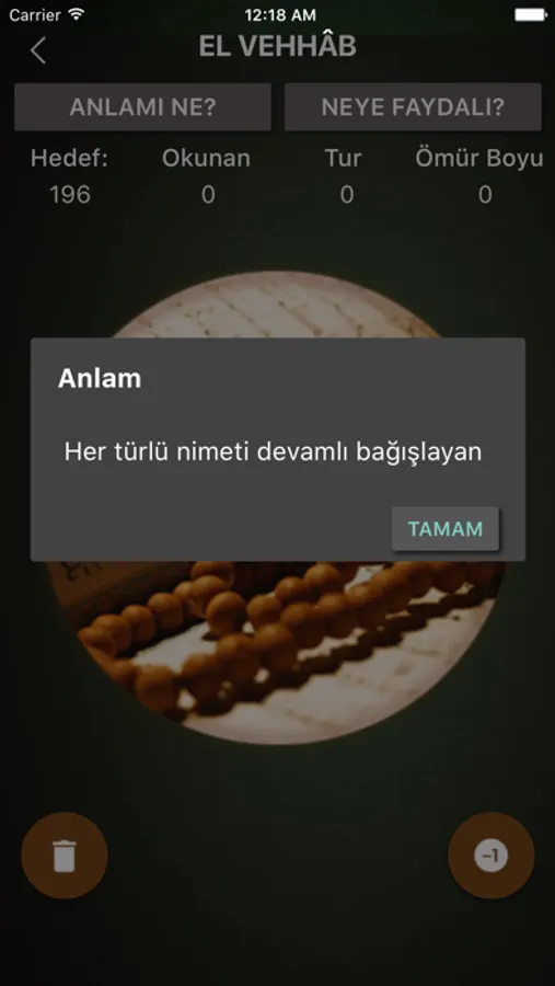 * Tesbihatlarınızın ömür boyu sayısını ve yaptığınız tur sayısını takip edebilirsiniz.